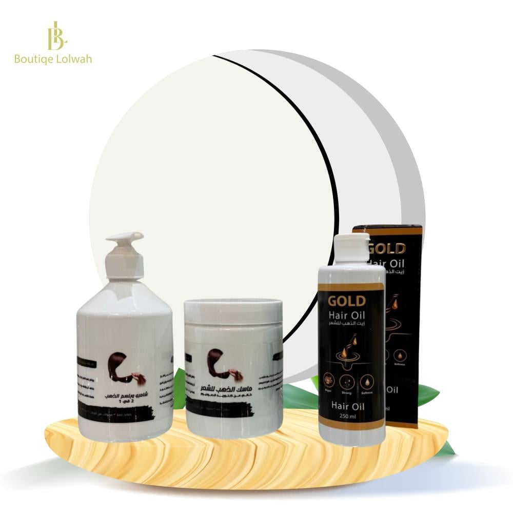 - المكونات: زيت الذهب، شامبو الذهب، ماسك الذهب